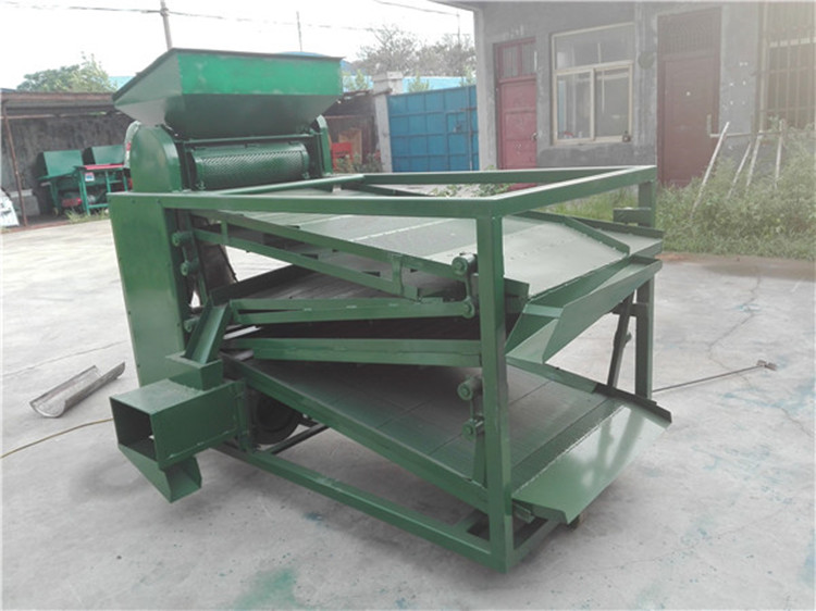 原枝花椒投進(jìn)料斗后--------粉碎裝置將原枝花椒進(jìn)行粉碎,將枝葉殼籽分別剝離下來--------通過下料器一起落到篩面上進(jìn)行分離篩分---------一層將篩出來的是大枝干、梅花椒、石子,復(fù)試篩網(wǎng)篩出來的是花椒枝--------二層篩出來的是花椒籽,椒籽出來的地方有風(fēng)機(jī),將里面輕的雜質(zhì)篩選出來-------三層是為篩分椒枝設(shè)計(jì),整層篩出來都是花椒枝------底層篩出來的是花椒殼,復(fù)試篩網(wǎng)是塵土雜質(zhì)等。
